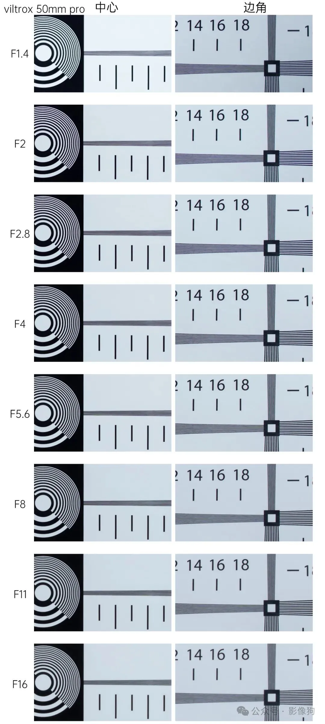 實際結果跟唯卓仕的MTF曲線也比較類似,特別是畫面中心1/2的區域裡銳度F8不如F1.4,這個點其實是不同於許多攝影師心裡的概念的。