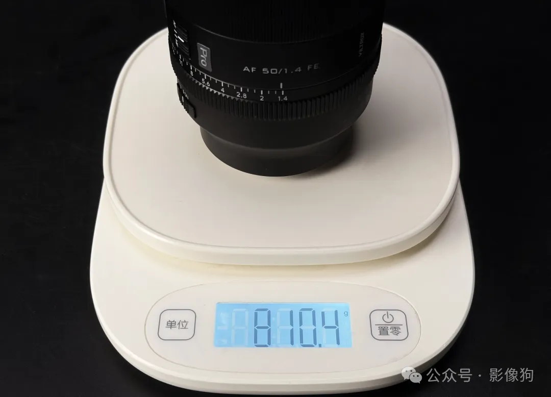 整支鏡頭金屬外殼、磨砂質感很不錯,裝在中高階機身上,視覺和平衡感都不錯。但這重量有800g左右(我們實測810g,不過這畢竟是工程樣品),確實比一般的50mm F1.4略重一點,甚至比個別輕量化的50mm F1.2都還要重了。