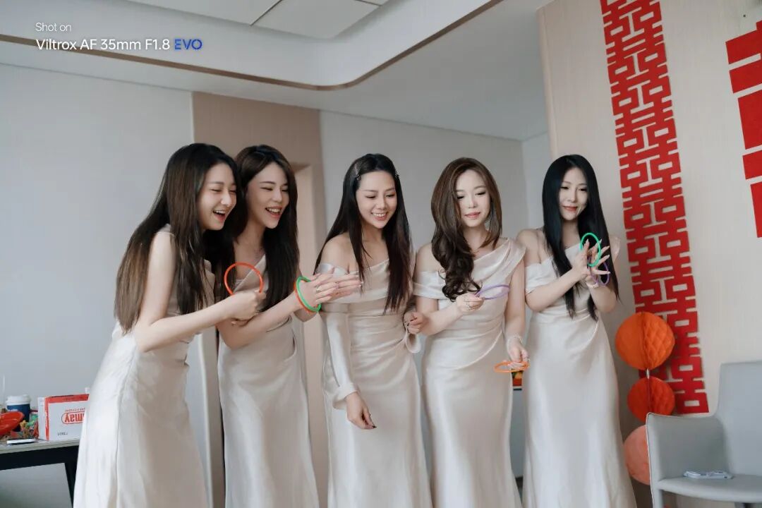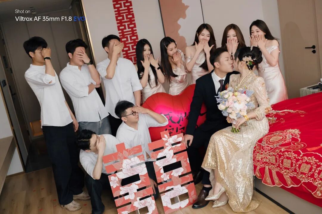 除了拍攝小姐姐,我還在最近一場婚禮上幾乎全程就只使用唯卓仕這兩顆全新的35F1.8 EVO和55 F1.8 EVO進行拍攝。講真我真的非常喜歡使用定焦鏡頭來拍攝婚禮,剛好這兩顆鏡頭便是我婚禮拍攝最常用的焦段,用起來更是得心應手。35EVO和55EVO在婚禮拍攝上,給我最直觀的感受就是對焦速度非常能打,甚至在光線並不充足的酒店走廊移動追焦拍攝,對焦速度和精度依舊在線。由於婚禮安排非常經湊,我的新娘子拍攝完馬上跑回房間換妝,她還非常搞笑的特意把晨袍飄起來像披風一樣,這一刻的瀟灑,我瞬間舉起相機,成功記錄下來。又例如新郎在進入新娘房接親的瞬間,我提前預判大致對焦位置,但在開門瞬間才發現有些偏差,但相機人眼識別已經鎖定新郎,升級版的STM馬達也快速推動鏡組把焦點控制在我想拍攝的人物上,這一刻新郎成功進入房間接親的喜悅被完美記錄。這樣的對焦速度我覺得對付婚禮拍攝已經卓卓有餘,而且這些圖片還是我的老將a7r3所拍攝的,如果新一代的機器估計還會有更加快的對焦速度。