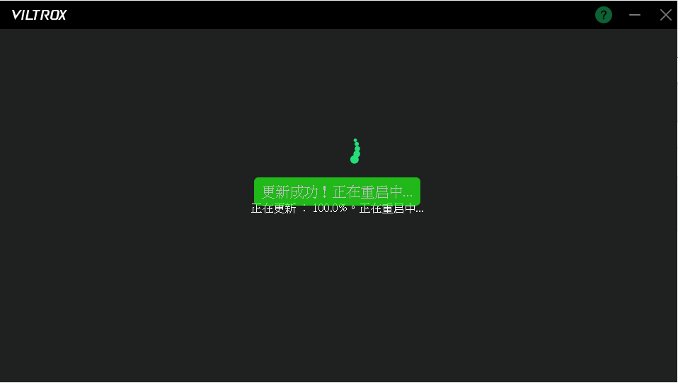 步驟5.更新成功後的畫面會顯示重啟中,請勿更動鏡頭設備及線材。