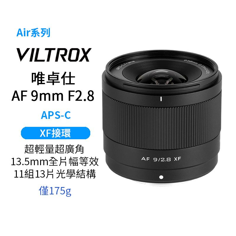 Viltrox 唯卓仕 AF 9mm F2.8 XF Air系列 廣角定焦鏡頭 APS-C 適用富士 X-mount Fuji xf 超輕量 大光圈 APS-C 自動對焦