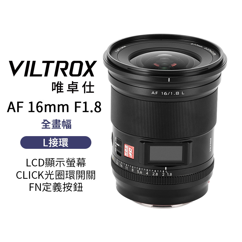 Viltrox 唯卓仕 AF 16mm F1.8 L L-mount LCD顯示螢幕 超廣角 大光圈 全畫幅 自動對焦 鏡頭
